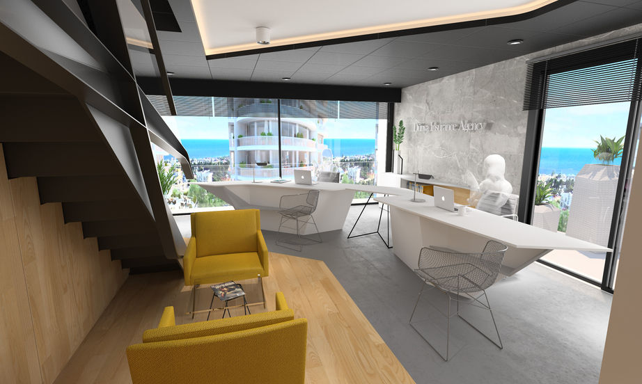 Within this tiny two floor office space, we introduced angles and curves in order to create character and flow. The tone of the design is mature and grounding so that the values of the insurance business can be silently reflected. All the desks are designed with a bespoke aesthetic in order to sit like sculptural islands within the defined zones.